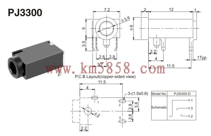 耳机插座 PJ3300插脚