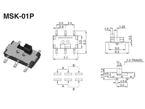小拨动开关MSK-01P.产品广泛应用于计算机周边、多媒体音响、家电仪器、电子玩具、视听设备、通讯设备等。