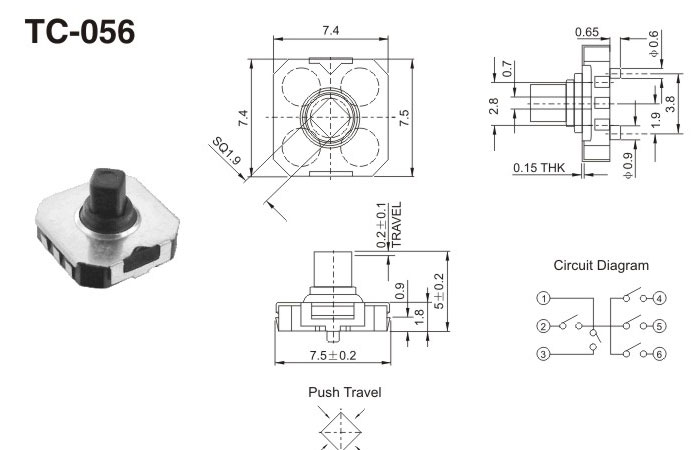 五项开关/TC-056本产品广泛用于,玩具,电动玩具,玩具公仔,防盗器,家用电器,手机数码,电子通讯,电子游戏机,汽车防盗,智能化系统,电视机、MP3、耳机,等电脑通讯器材