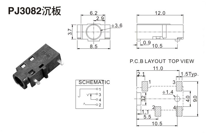 耳机插座/PJ3082沉板贴片本产品广泛用于,玩具,电动玩具,玩具公仔,防盗器,家用电器,手机数码,电子通讯,电子游戏机,汽车防盗,智能化系统,电视机、MP3、耳机,等电脑通讯器材