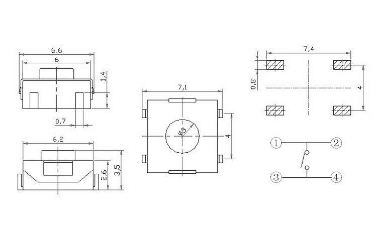 防水轻触开关KM-6262插脚 本产品广泛用于,玩具,电动玩具,玩具公仔,防盗器,家用电器,手机数码,电子通讯,电子游戏机,汽车防盗,智能化系统,电视机、MP3、耳机,等电脑通讯器材